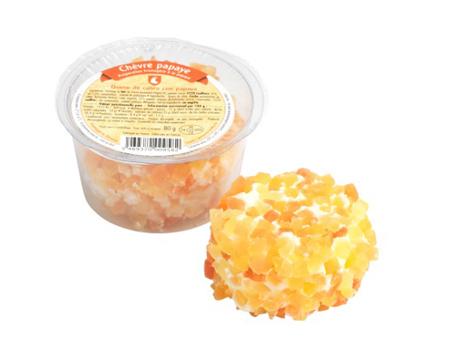 Leche entera pasteurizada de cabra, sal, fermentos lácticos, cuajo, 37% papaya deshidratada, azúcar, conservador : E220 (sulfitos), sal, conservador: sorbato potá