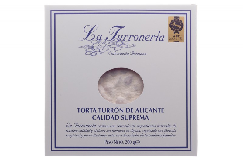 Almendras tostadas (63%), azúcar, miel, glucosa, clara de huevo y oblea