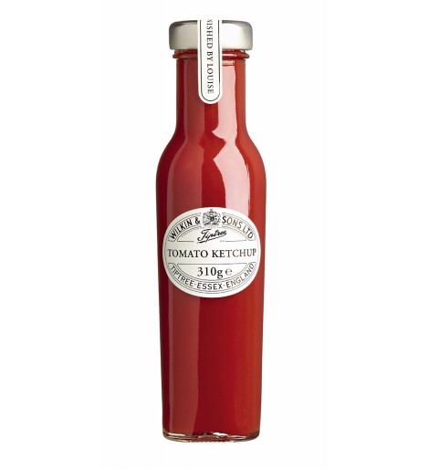 Tomates (180 g por 100 g de ketchup), azúcar, vinagre de vino, zumo de limón, sal y especias.