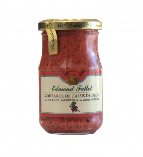 Agua, granos de mostaza, vino blanco (16,7%) (con sulfitos), vinagre de alcohol, crema de grosella negra de Dijon (grosella negra, azúcar, alcohol) (5.4%), sal, sabor natural de grosella negra, cáscaras de semillas de mostaza, azúcar, colorante de cochinilla.