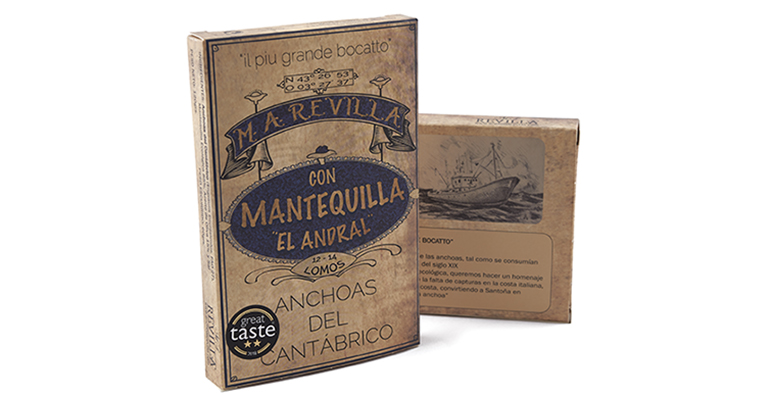 Anchoas (pescado) procedentes del Cantabrico (Engraulis Encrasicolus, FAO 27), matequilla ecológica (leche) 43%, aceite de oliva 7% y sal